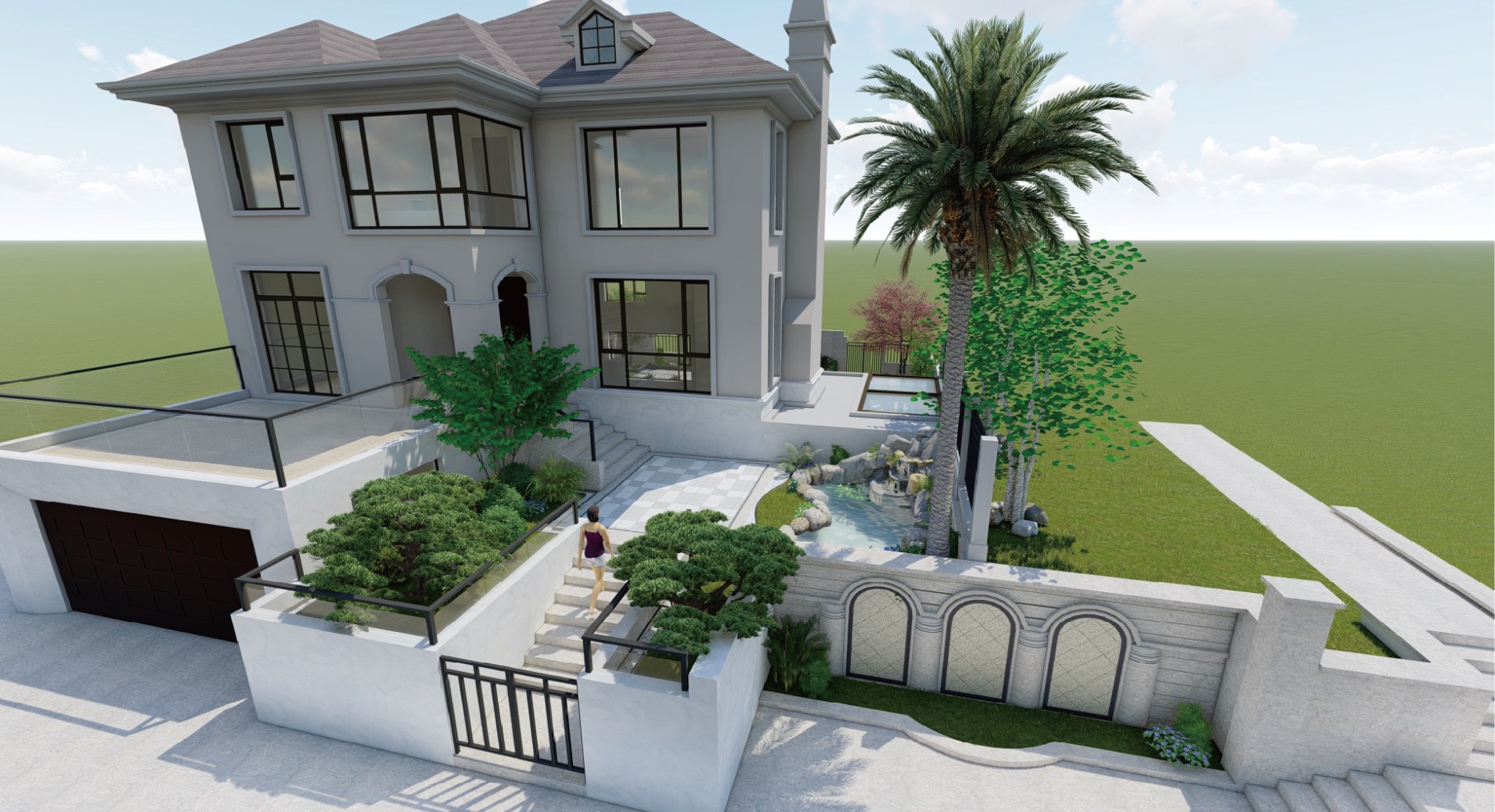 项目内容:入户方法调解,衡宇外立面刷新翻新,配合园林设计和主体设计气概搭配 。